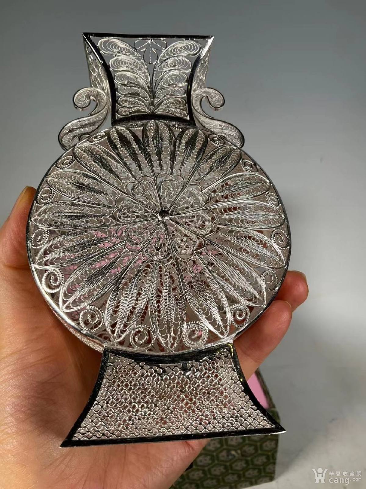 回流创汇时期纯银花丝镂空双环耳抱月瓶