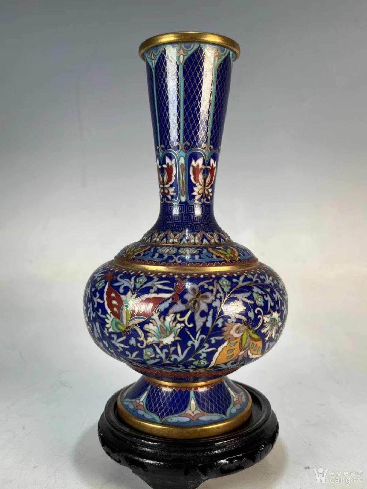 张同禄设计的景泰蓝蓝地蝶花瓶