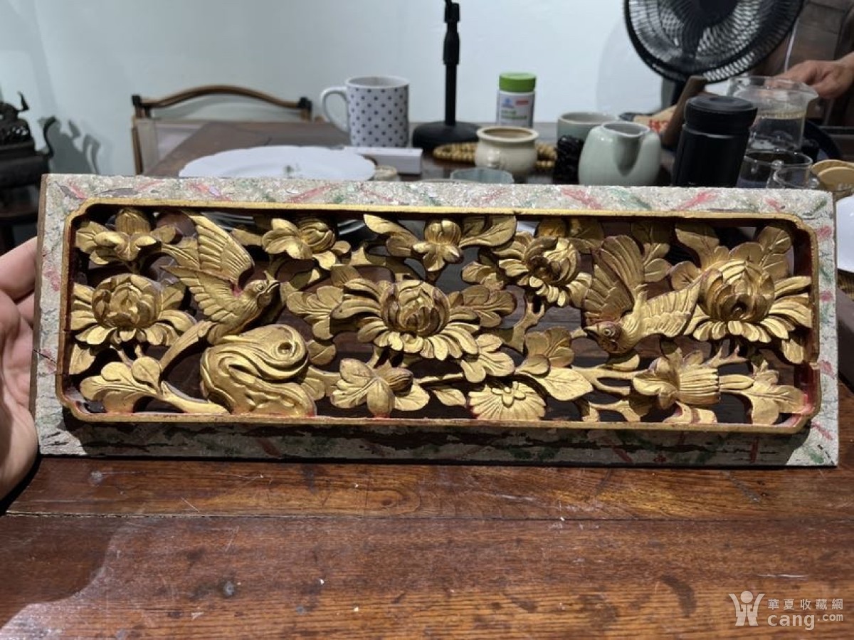 清代「花开富贵-鸟语花香」镂空大漆鎏金木雕,雕工没得说,两个