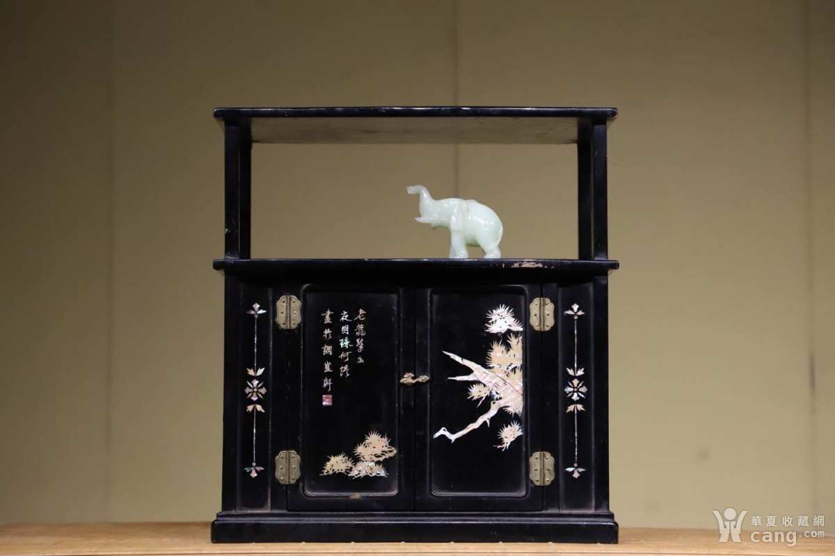 大漆嵌螺钿案头柜 此柜有阁有门,通体推光黑漆,细腻温润