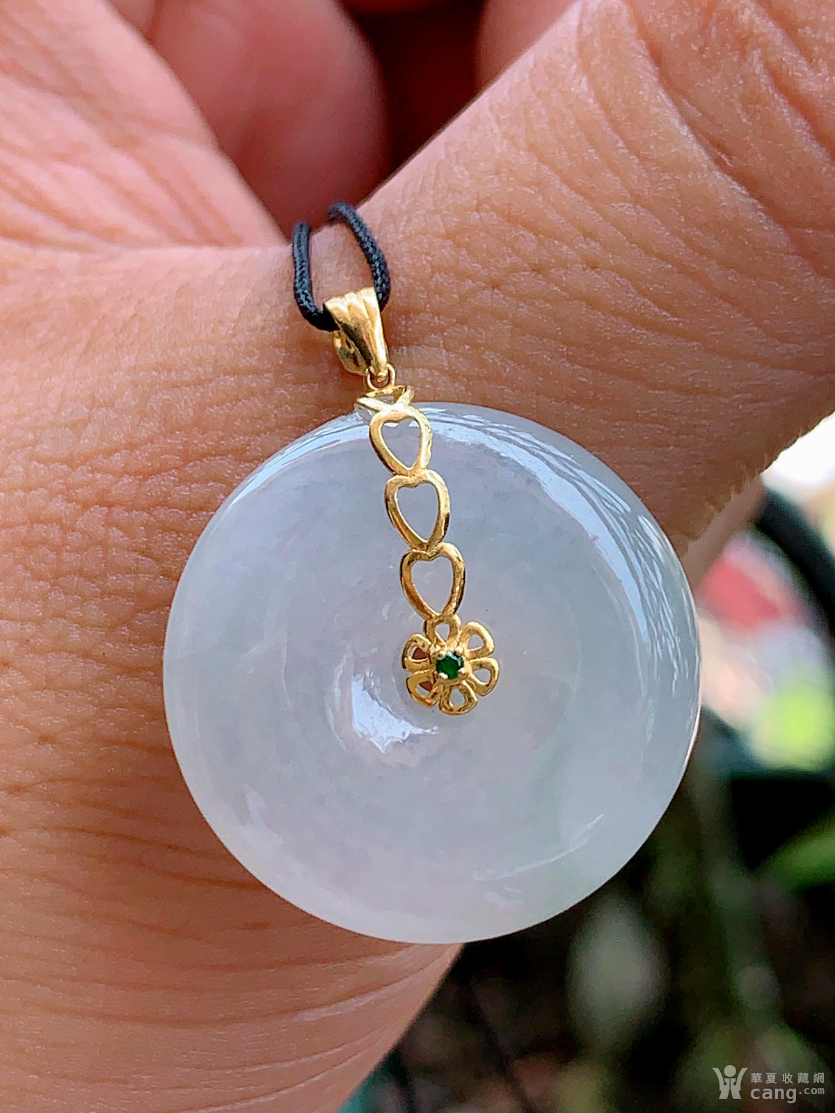 缅甸天然翡翠A货18k金扣冰透水润平安扣