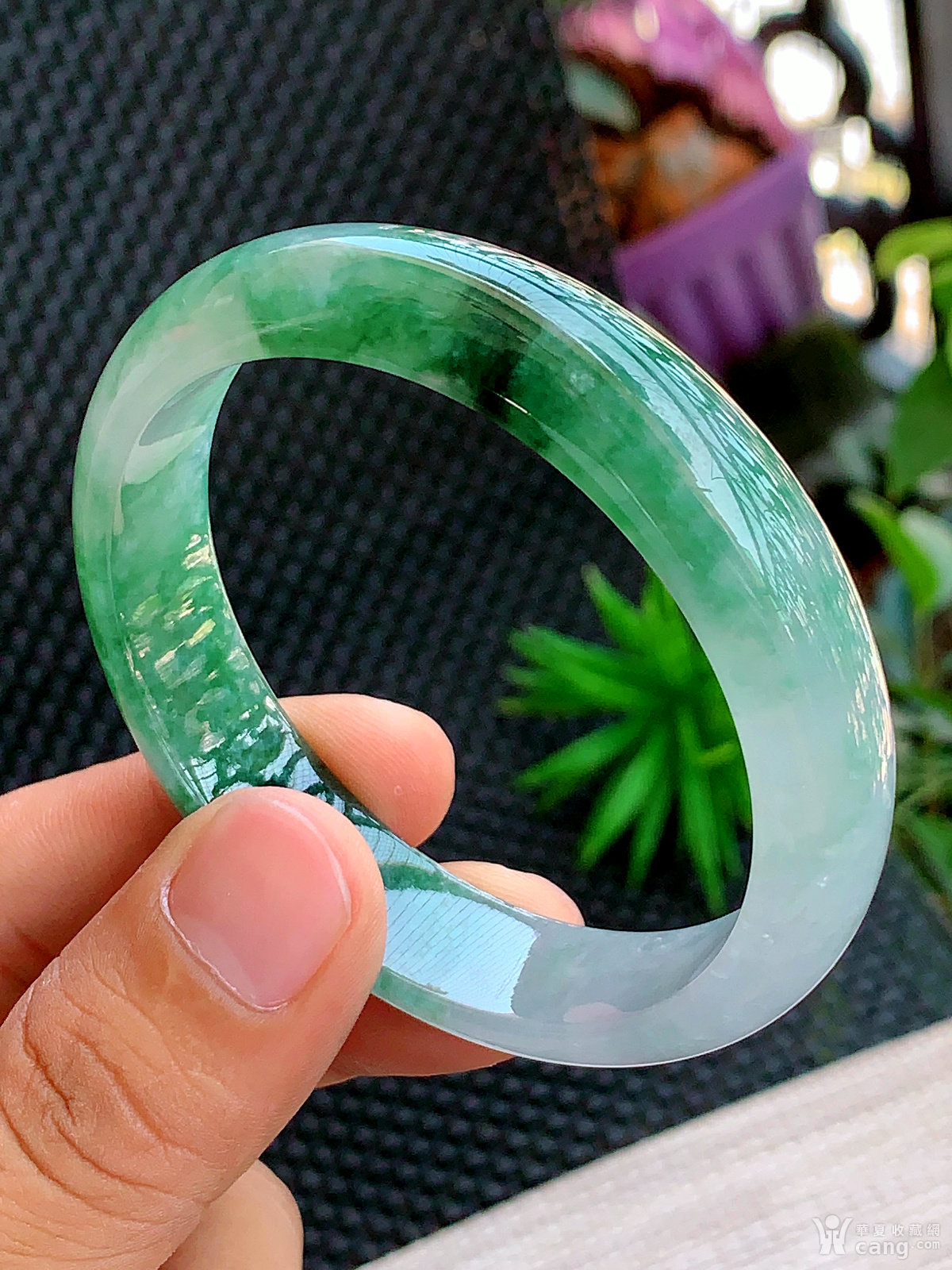缅甸天然翡翠A货冰透水润飘花宽边手镯59.6圈口