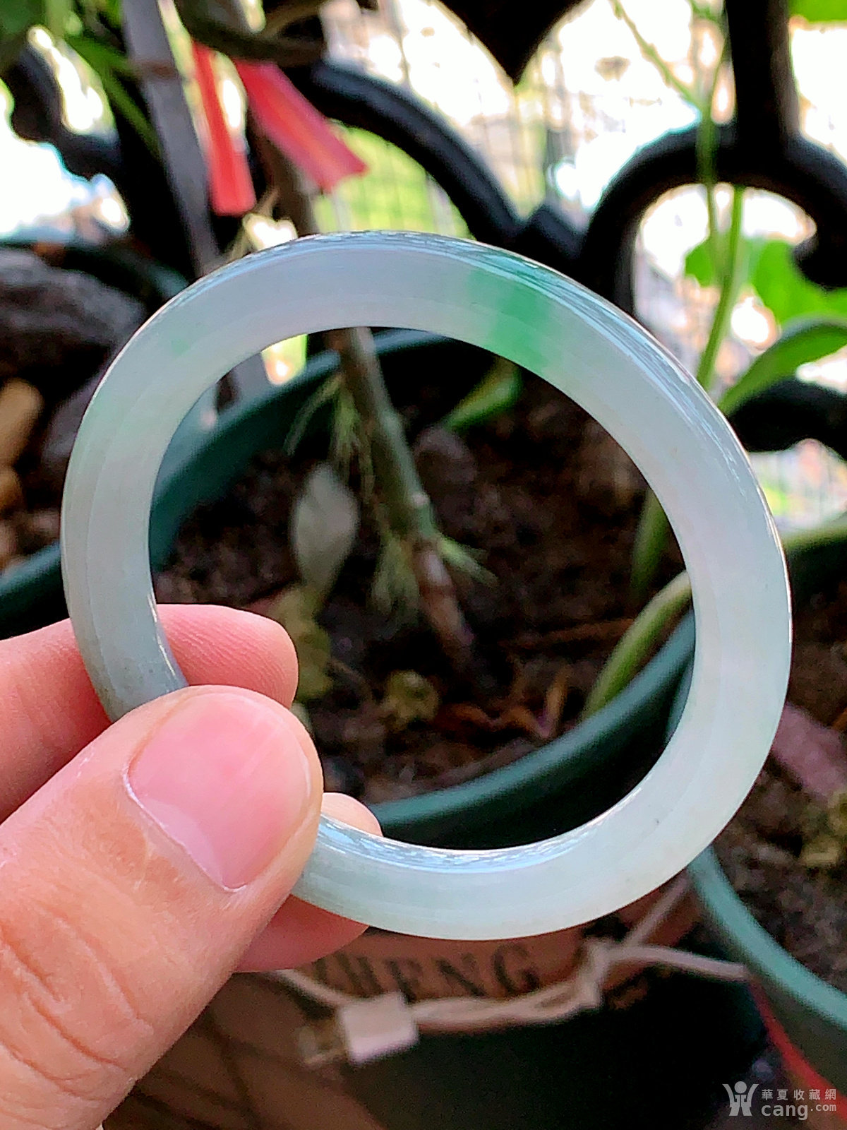 缅甸天然翡翠A货冰透水润飘花圆条手镯51.2圈口