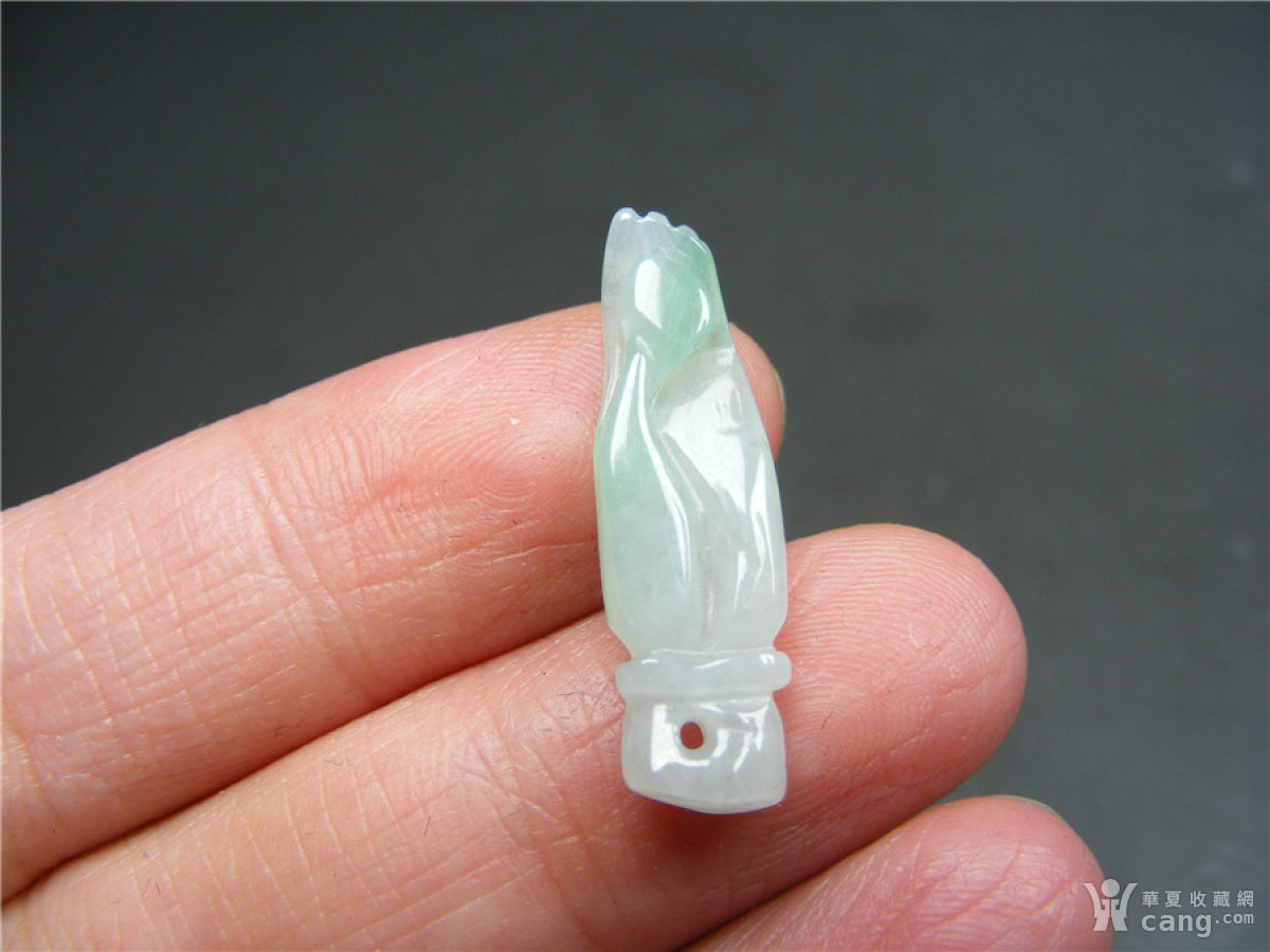 49A货冰种飘阳绿翡翠手工雕老雕法带孔圆雕佛手捻宝小坠