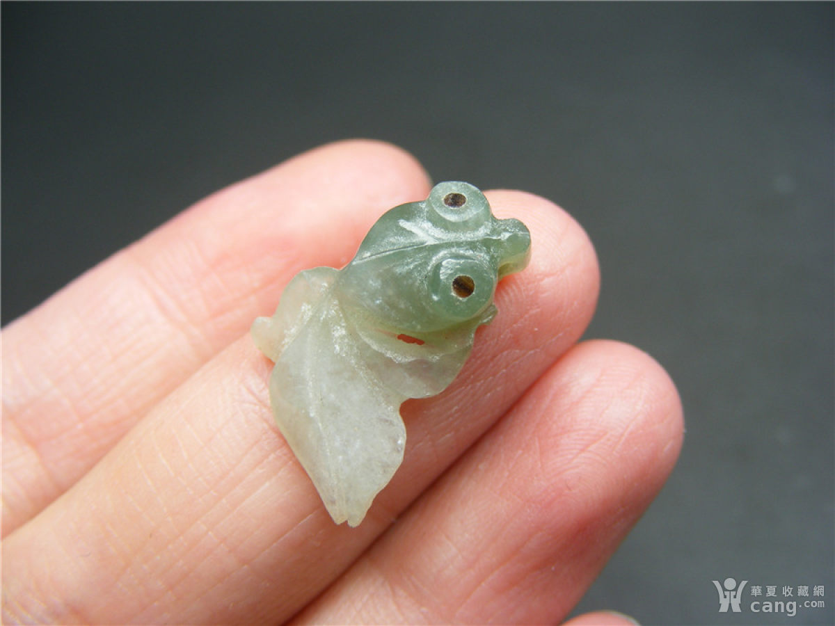 48几十年的老坑A货冰种飘绿翡翠眼睛点黑彩小金鱼坠