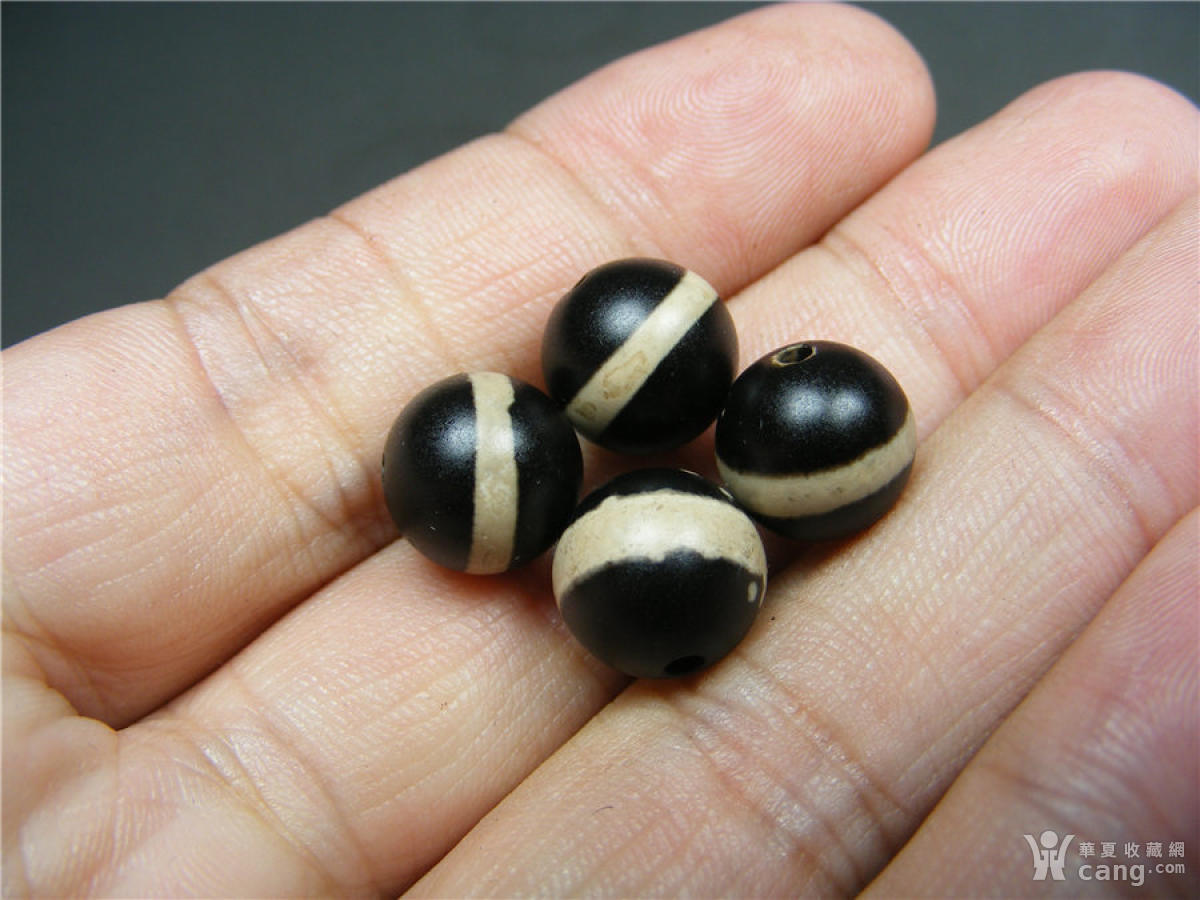 25 老西亚几十年的黑色镶蚀带白彩一线纹中号圆珠4颗
