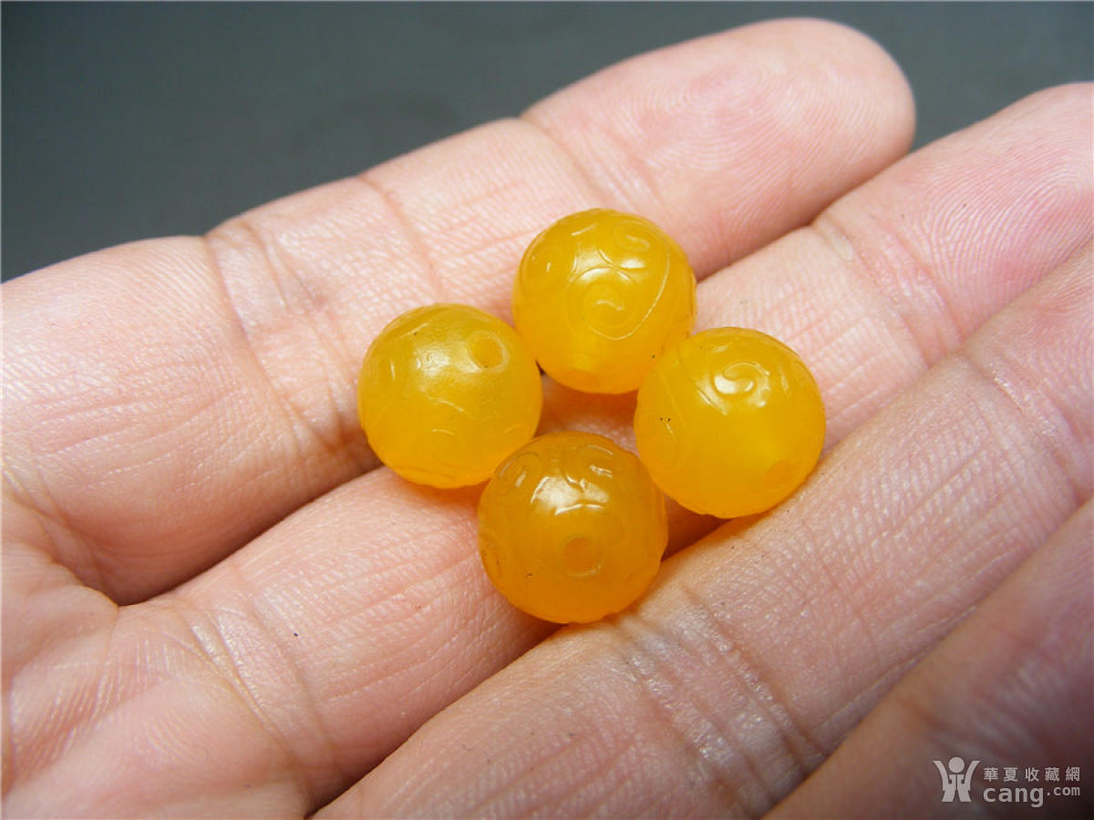 40 八九十年代黄玛瑙卷云纹大圆珠4颗