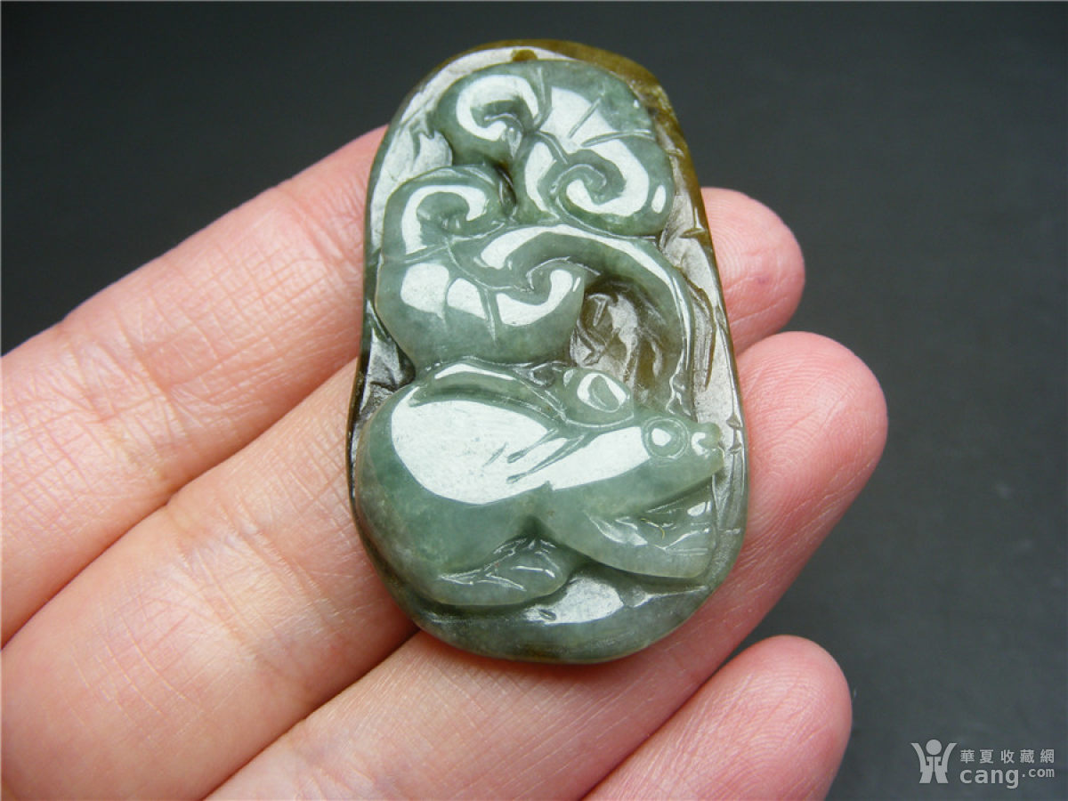 几十年的A货晴水绿飘褐黄翡翡翠单面工浮雕灵芝硕鼠大坠佩