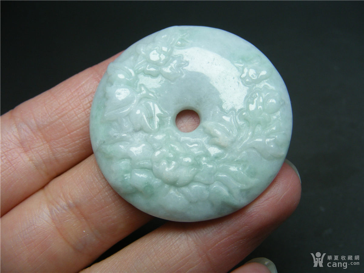 58A货飘阳绿翡翠单面工浮雕花卉蝴蝶‘蝶恋花’大圆佩