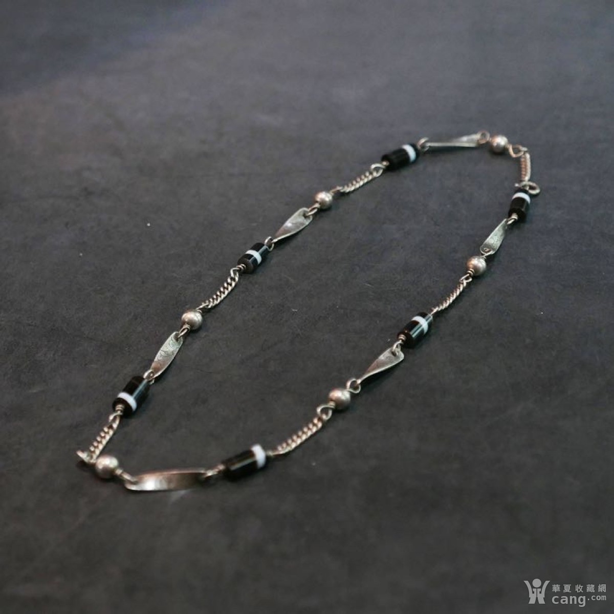清代缠丝玛瑙纯银浮雕花卉项链