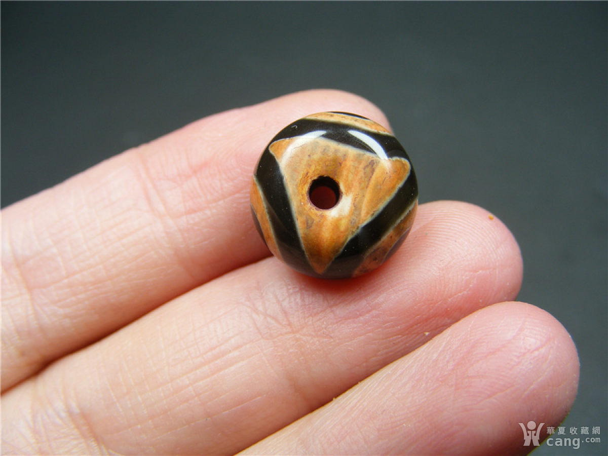 65藏传几十年的玛瑙三眼天珠中号圆扁勒子珠