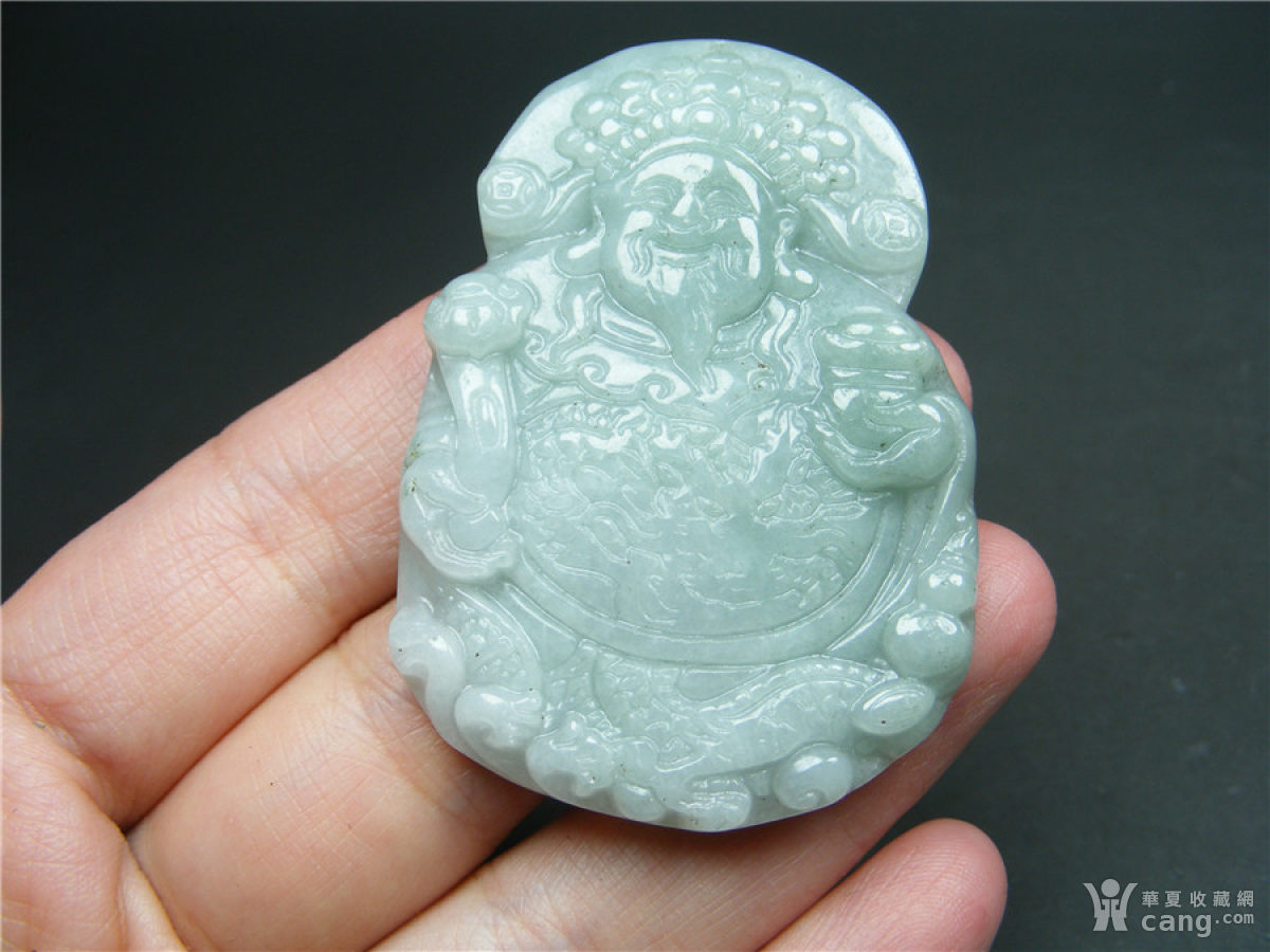 72出口创汇期几十年的A货飘蓝水翡翠单面工浮雕财神大佩(