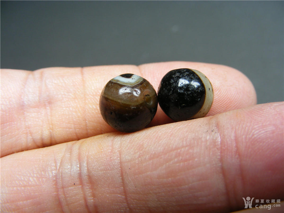 23 西亚几十年的黑白缠丝玛瑙中号珠2颗