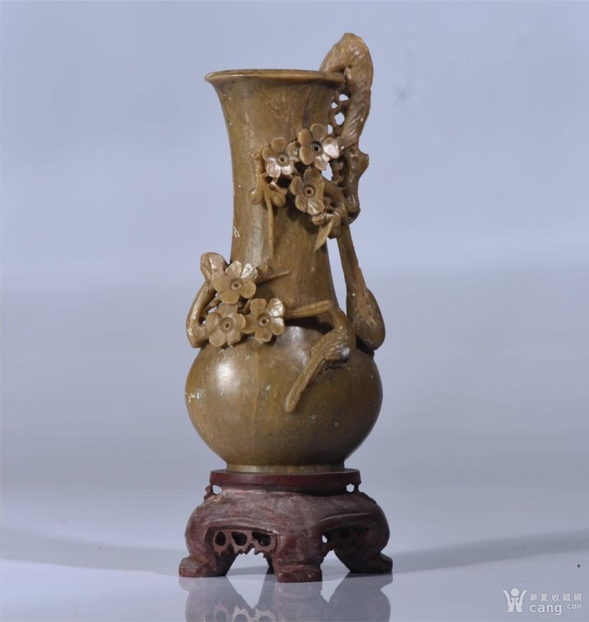 欧洲回流清代 青田石镂空精雕喜鹊登梅花插摆件