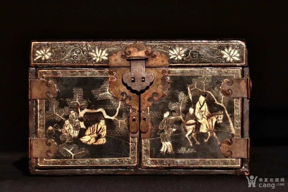 【药箱】医用 大漆描金人物,内置抽屉, 铜饰完美,尺30-1