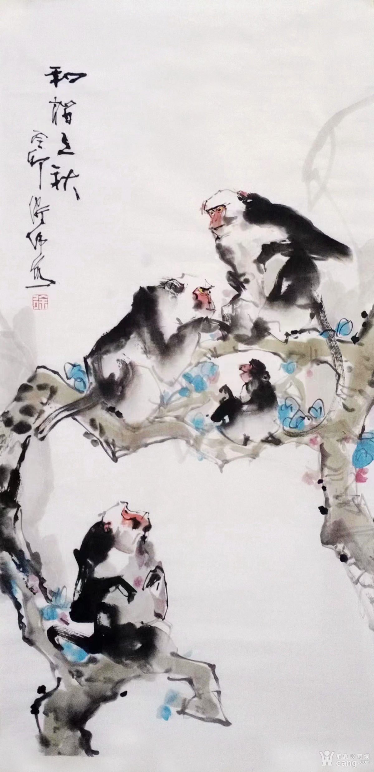 徐卫伟画猴《和谐之秋》尺寸100cmX50cm