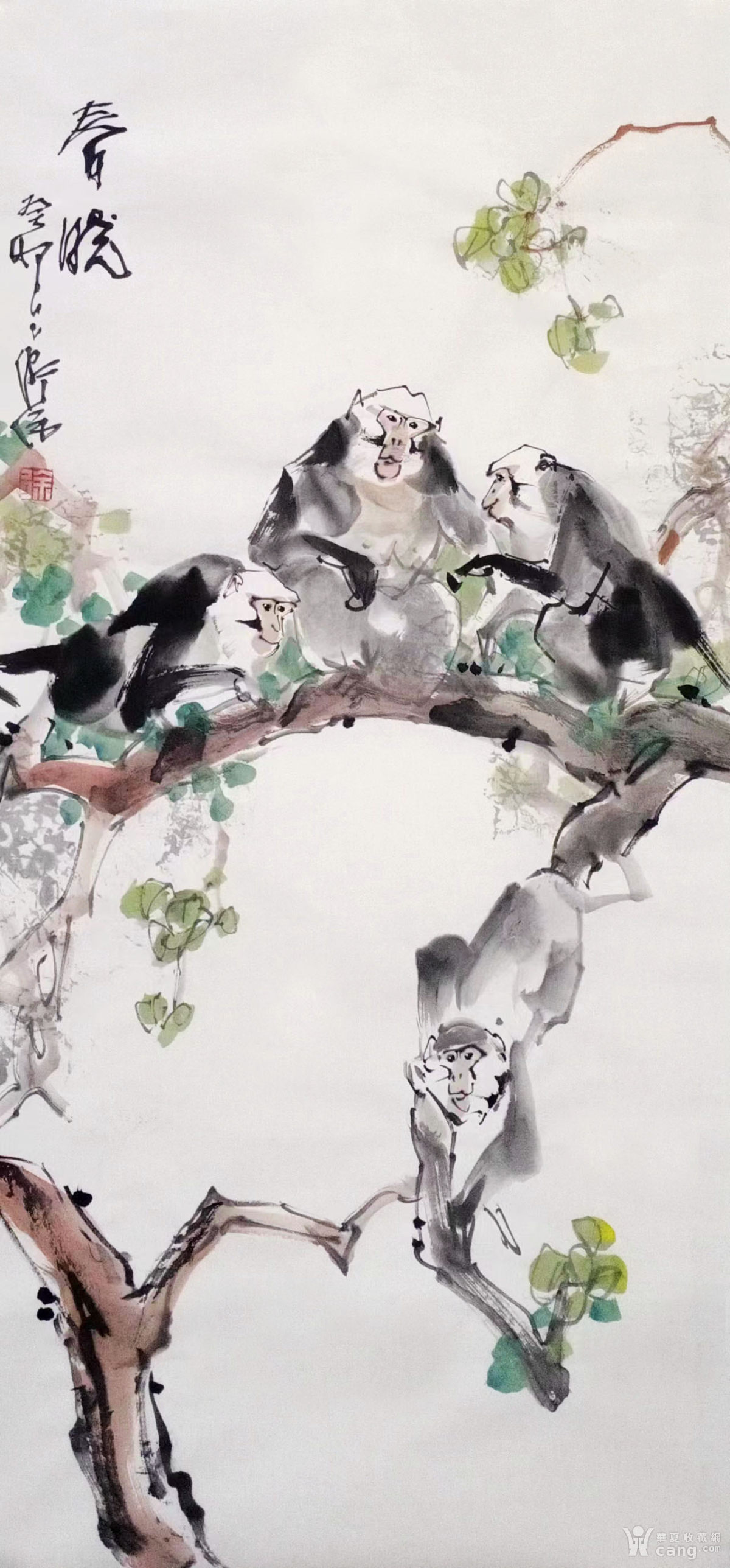徐卫伟画猴《春晓》尺寸100cmX50cm