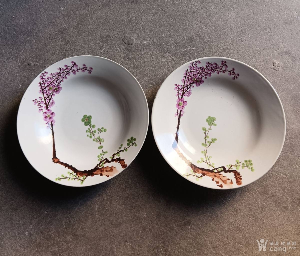一对五六十年代手绘杆枝梅大盘