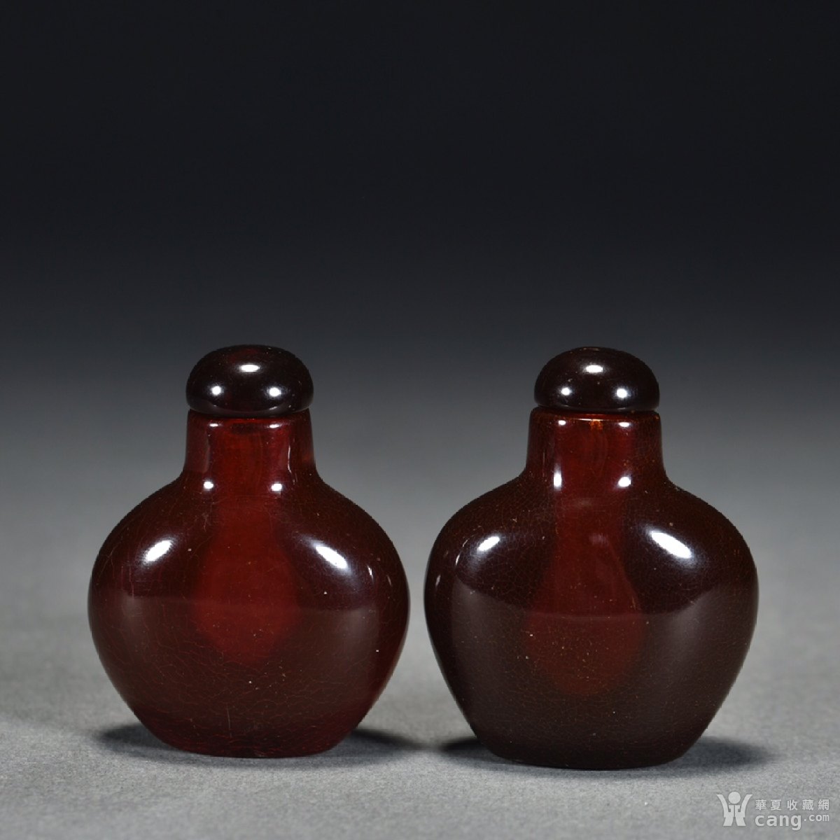 天然琥珀素面鼻烟壶一对