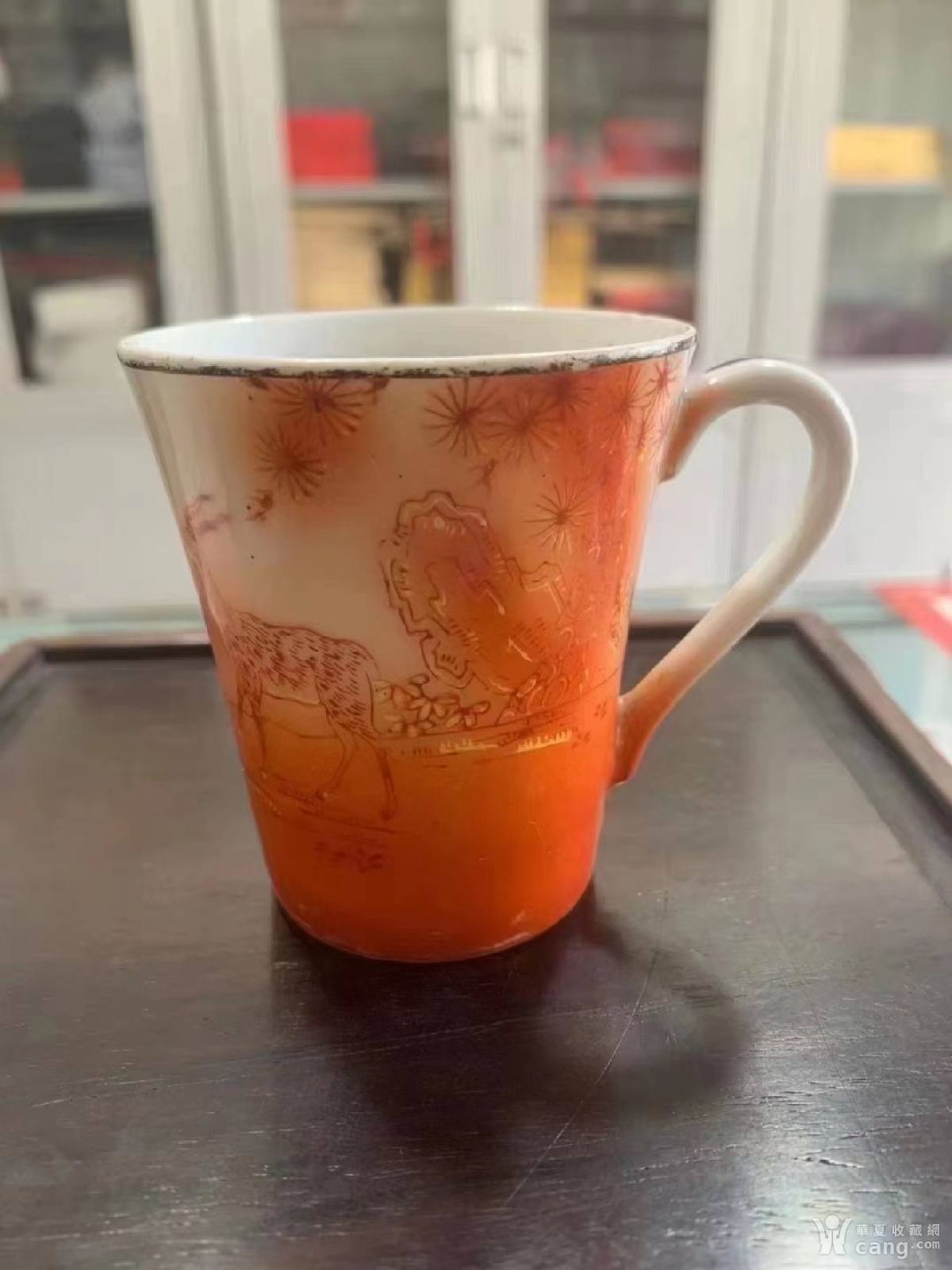 民国喷红松鹿茶杯,