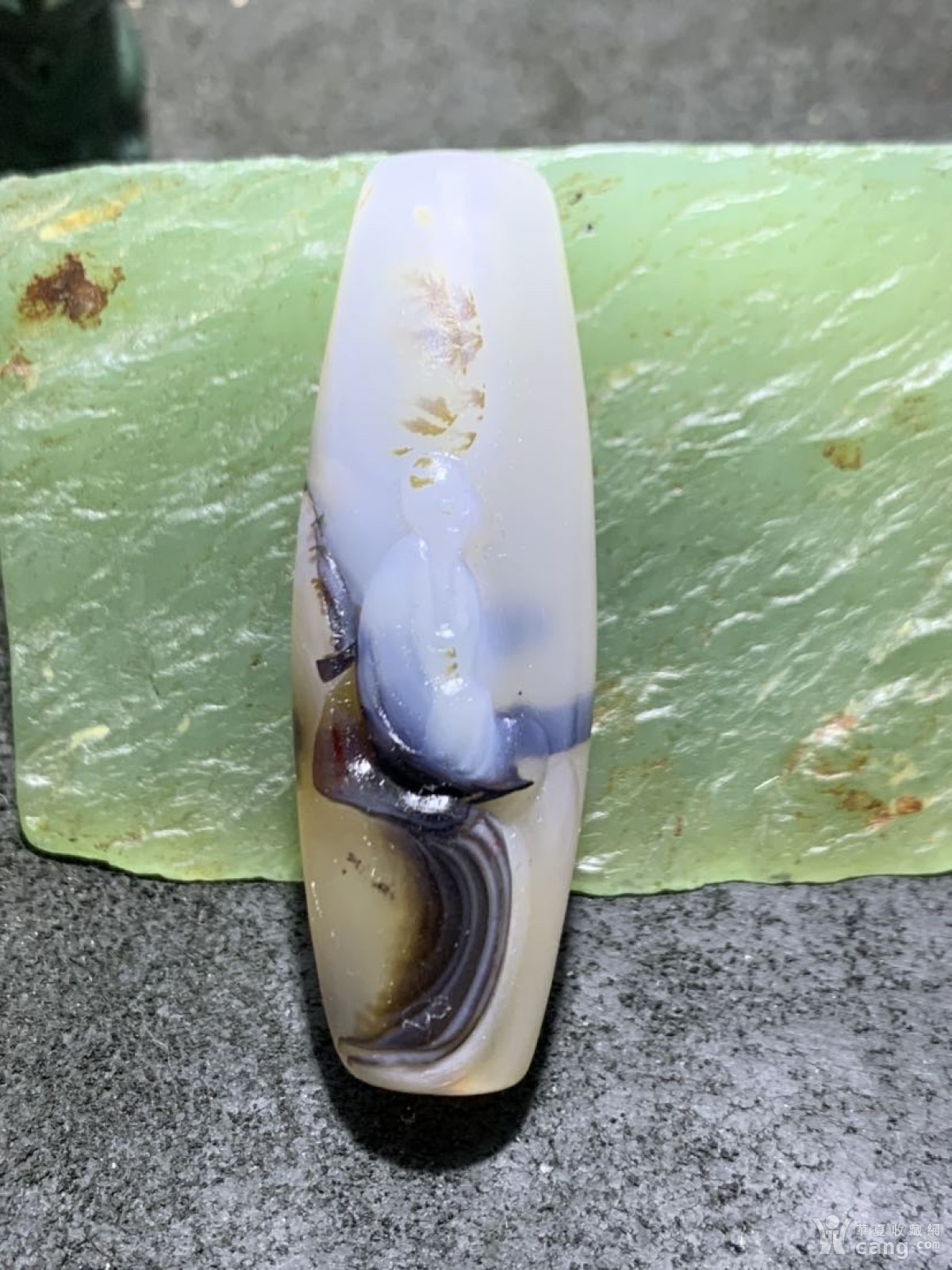 精美高玉化亚光海洋玉髓手工俏色巧雕求仙问道意境大桶珠一个!