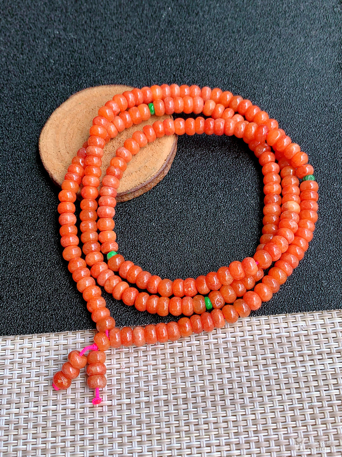 缅甸天然翡翠A货冰润红翡算盘珠项链