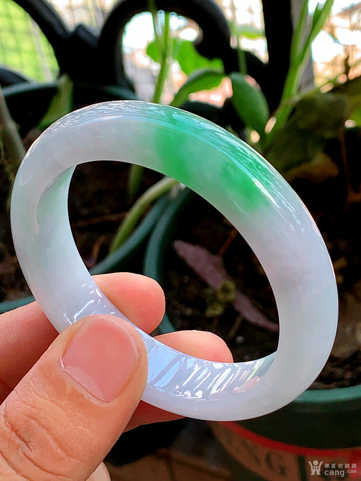 缅甸天然翡翠A货冰透水润飘花宽边手镯57圈口