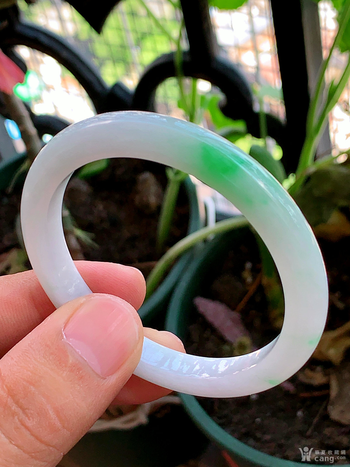 缅甸天然翡翠A货冰透水润飘花宽边手镯54.8圈口
