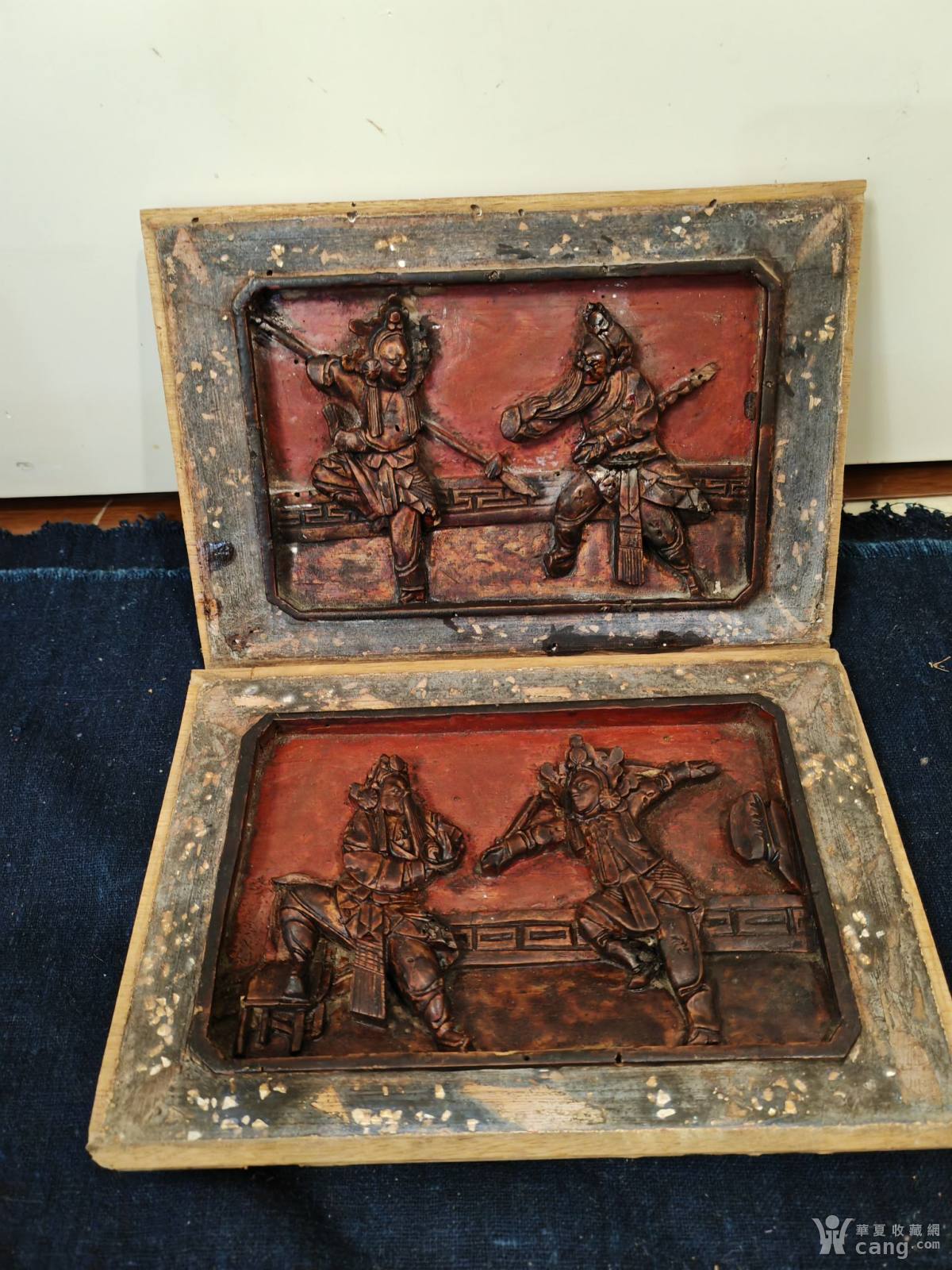 清代雕工极好的戏曲人物雕板一对