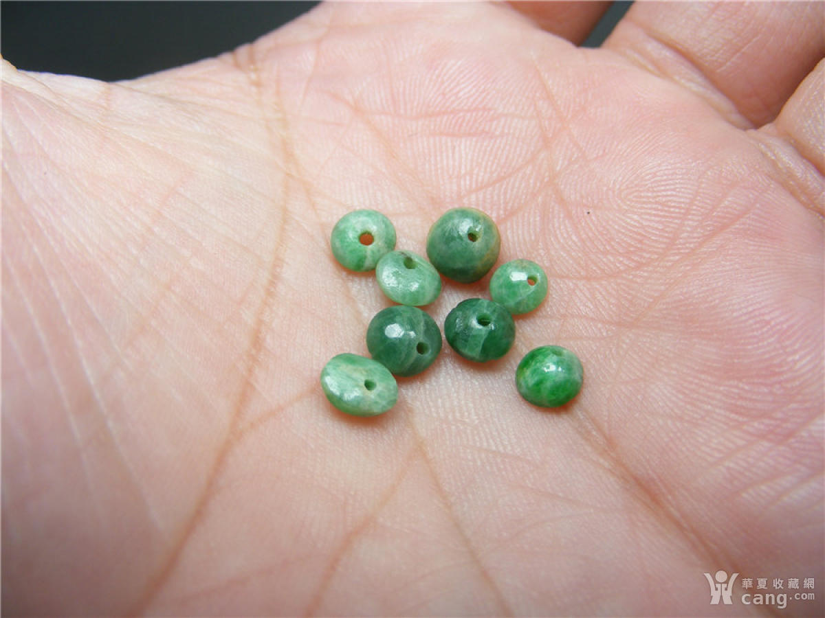2A货翡翠花片几十年前老改的随型带孔白底青小米珠8个