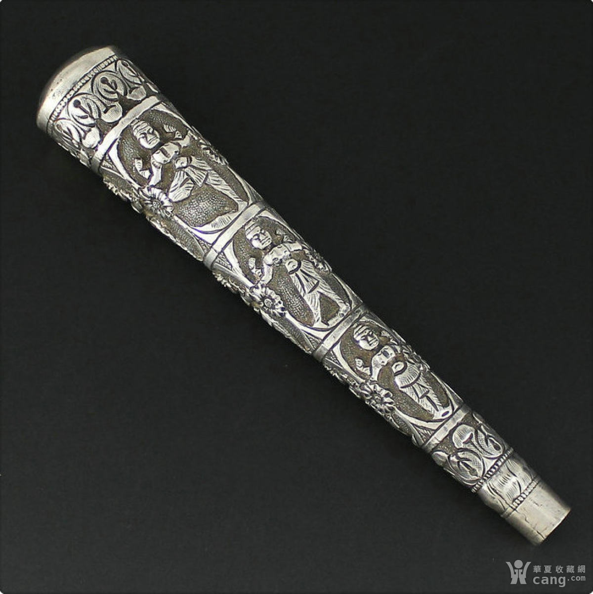 【东南亚古董银器】东南亚满工人物浮雕纯银伞柄