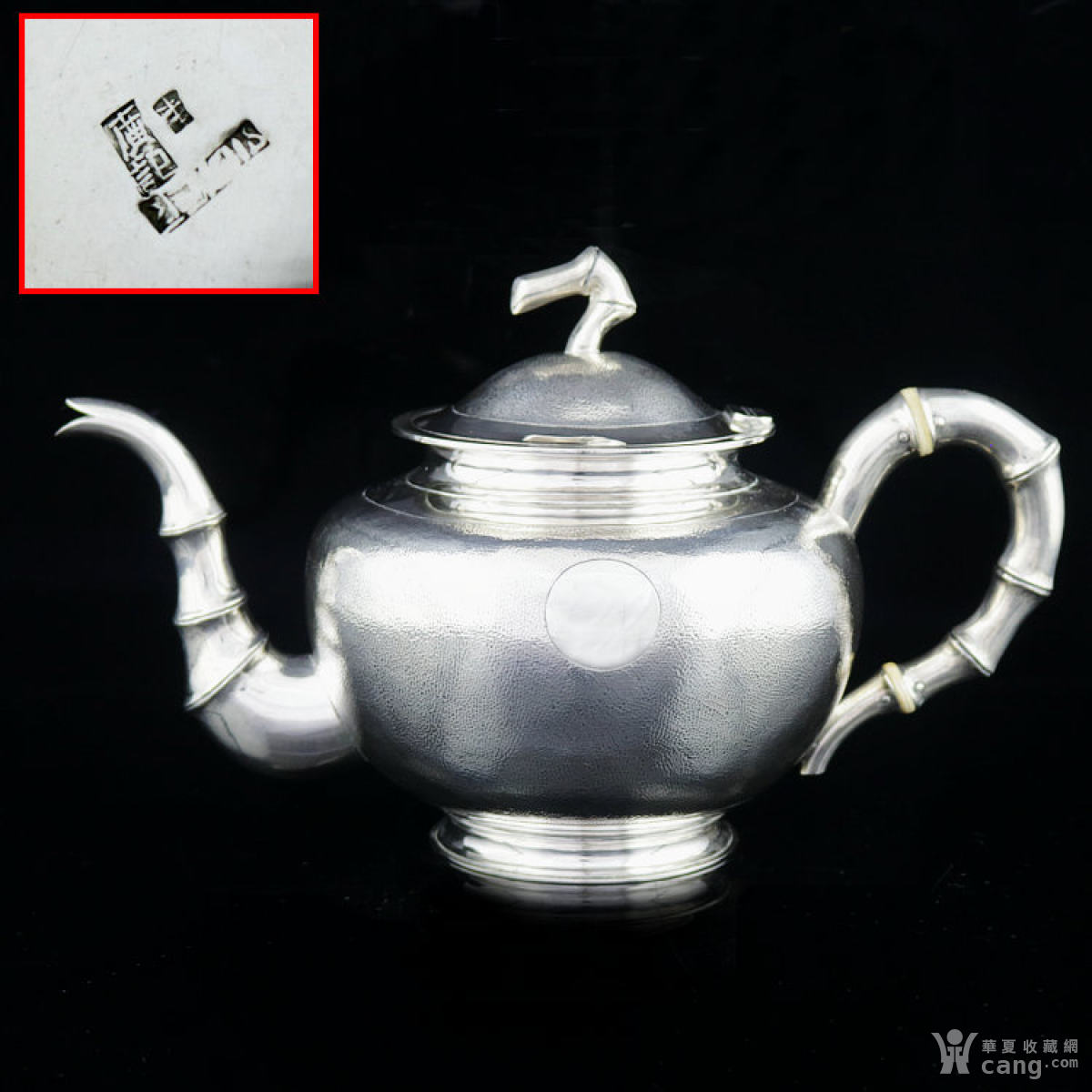 【海外回流】清末锤揲磨砂纹精雕竹节纯银茶壶 【广记】款