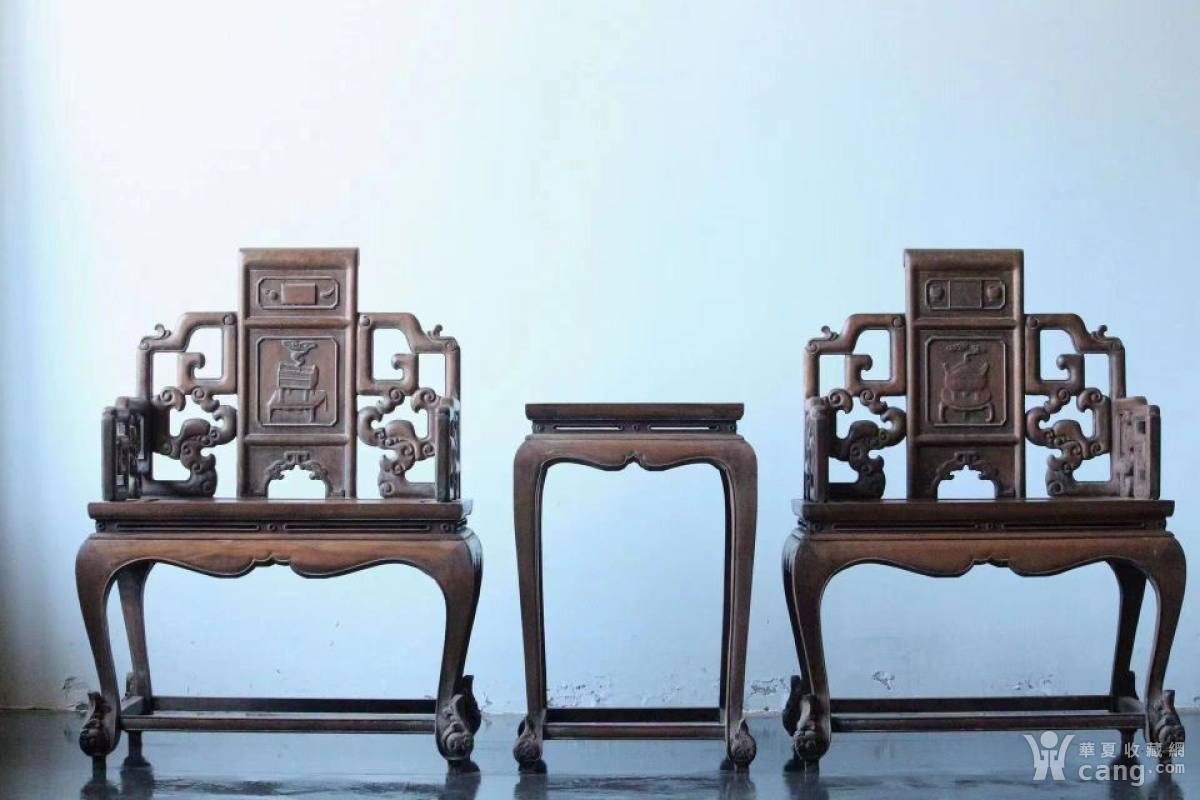 【小藏,弯腿•夔龙太师椅】 此椅器型美观,弯腿如意花,雕工