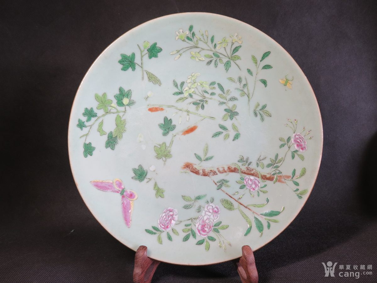 精品---清代嘉庆瓜瓞绵绵虫草粉彩豆青大盘
