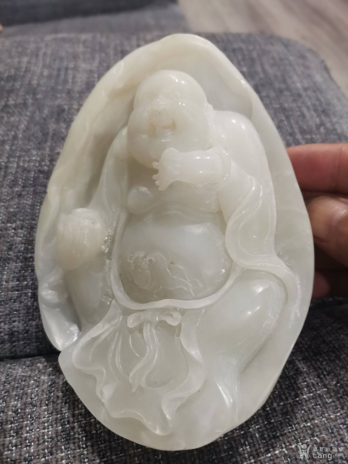[糖羊脂白玉]和田玉糖白玉笑口常开弥勒佛挂件吊48.85g