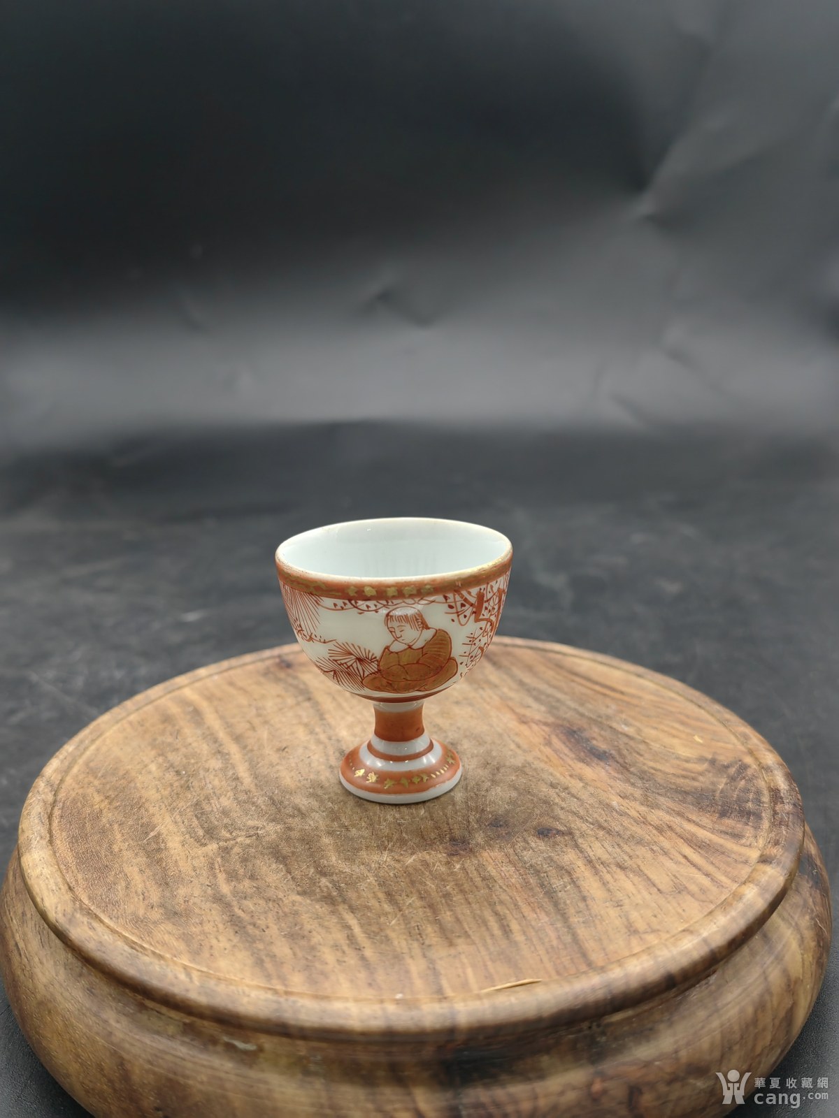 民国老九谷款泛红人物诗文杯