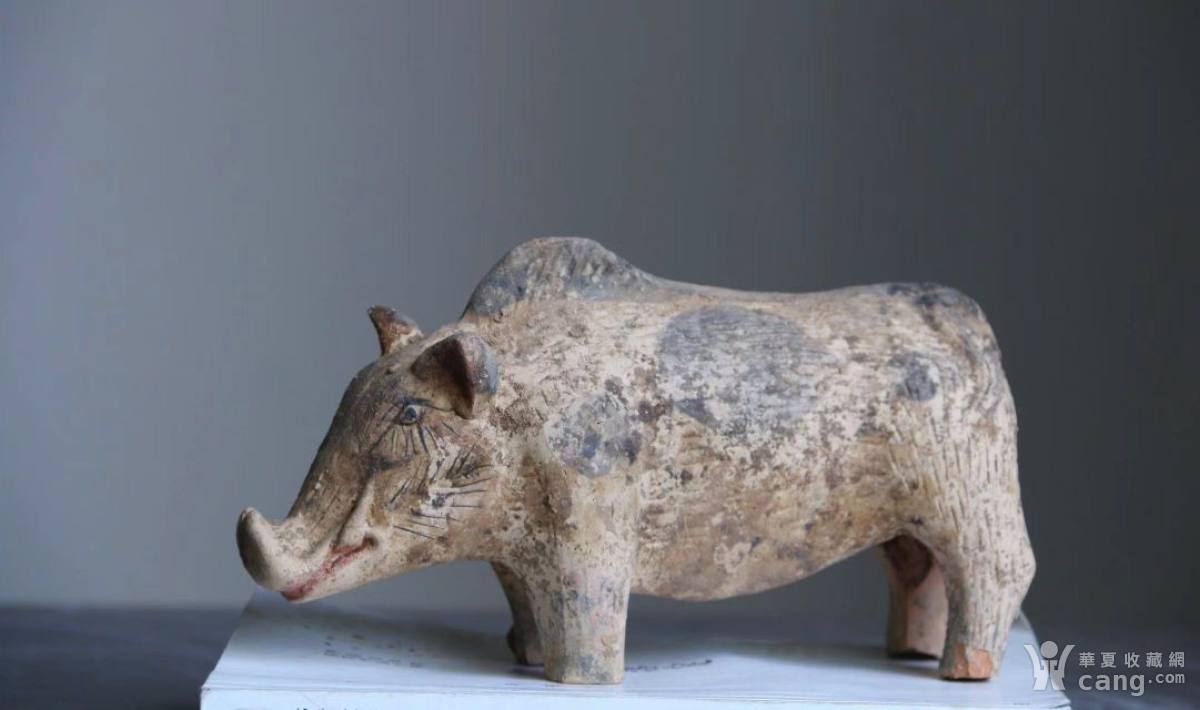 【 茶宠•陶猪 】 尺寸:长21,高12cm。此猪周身彩绘