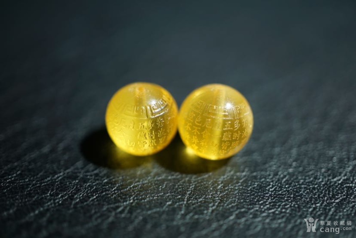 琥珀 心经珠一对