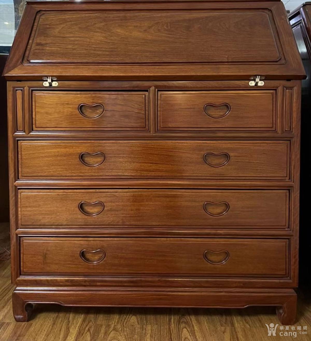 创汇时期草花梨木雕刻素面书柜桌