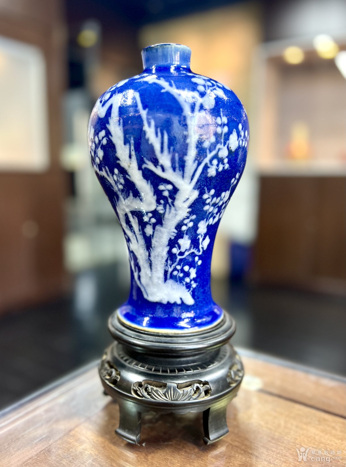 清乾隆嘉庆精品祭蓝釉堆白梅花纹梅瓶
