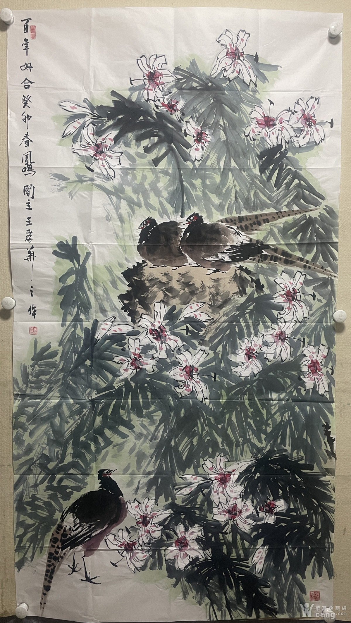 六尺整张【保真】王孝华6尺中堂花鸟画百合花锦鸡5《百年好合》