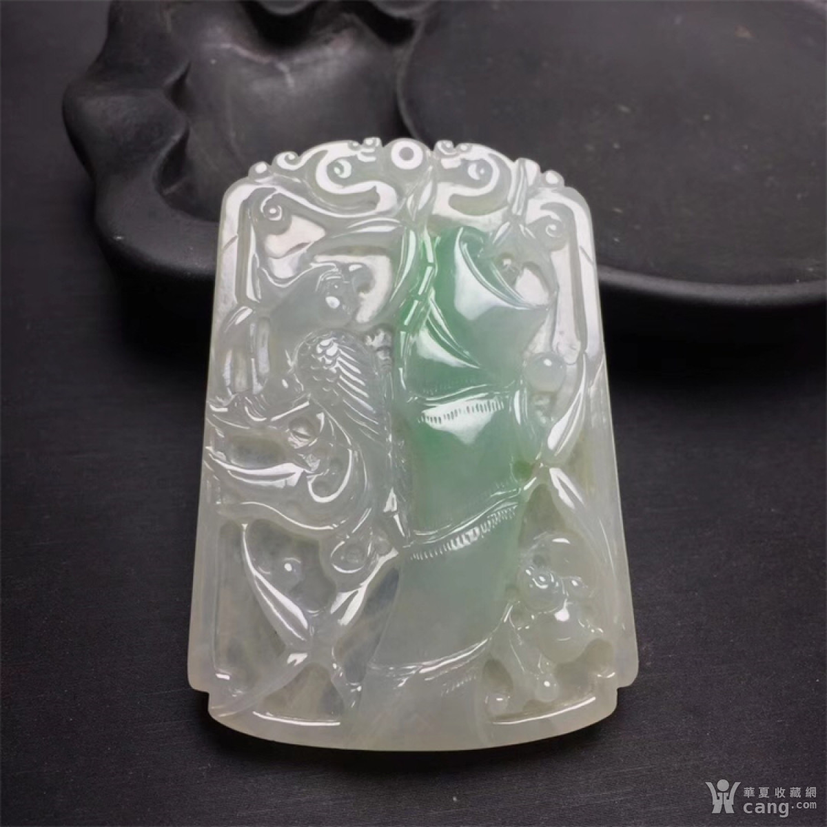 D622冰种翡翠双龙竹报平安鹦鹉吊坠挂佩