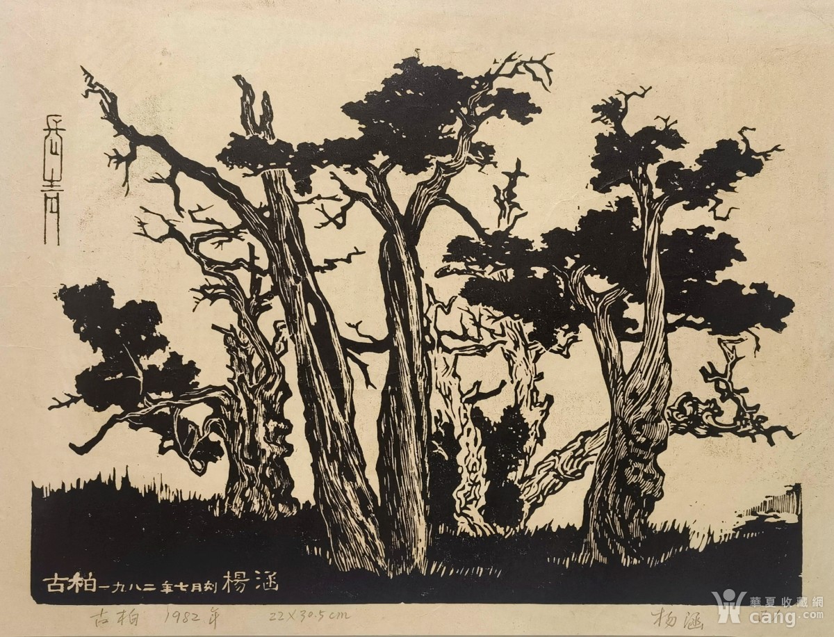 杨涵木刻版画《古柏》1982年,尺寸22cmX30.5cm