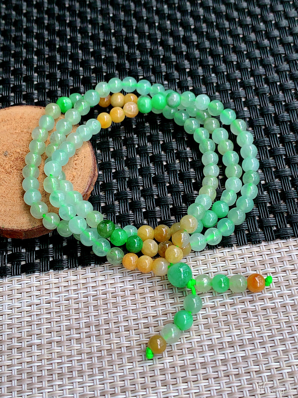 缅甸天然翡翠A货冰透水润双彩圆珠项链
