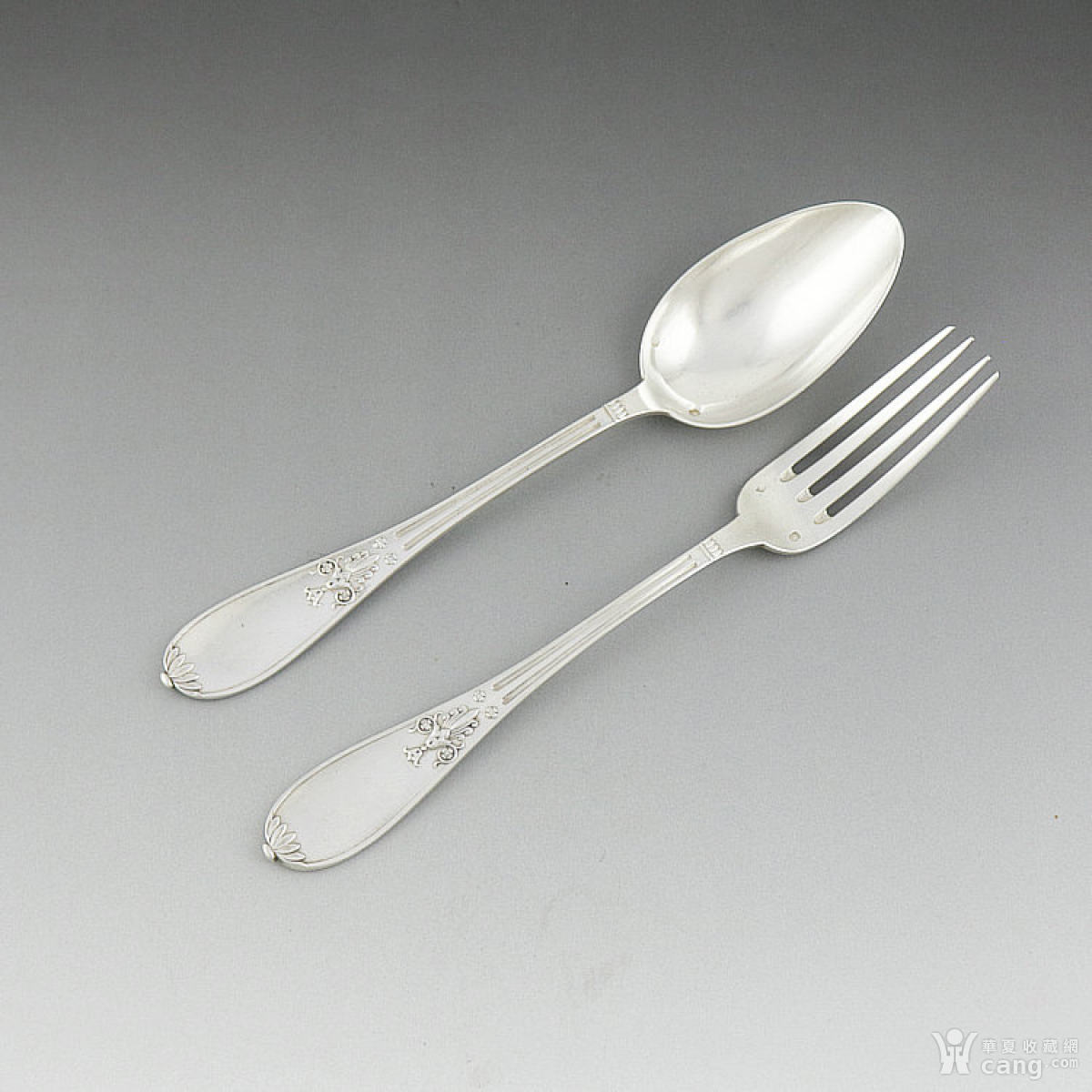【西洋古董银器】19世纪法国新艺术风格浮雕纯银主餐叉勺