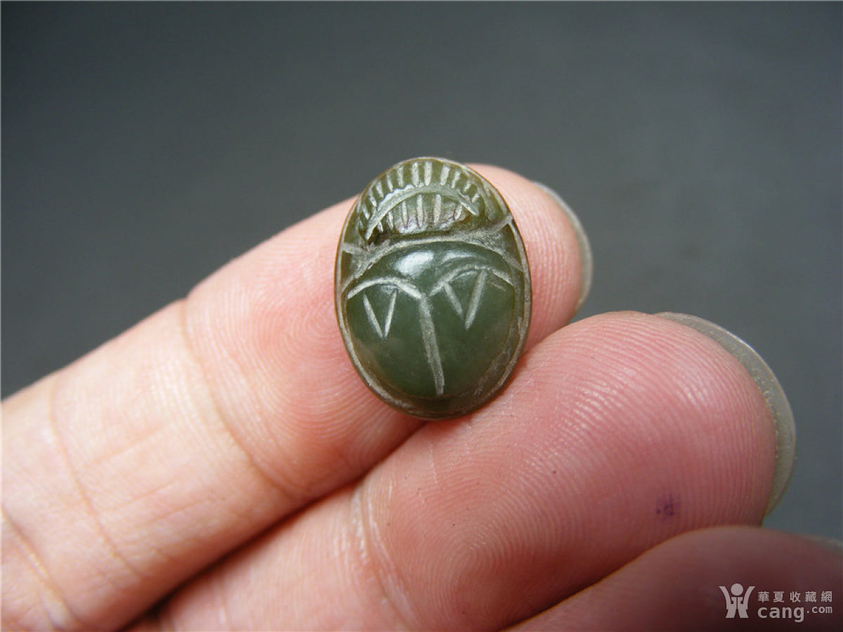 晚清-民国老晴水绿带沁翡翠圆雕椭圆型圣甲虫首饰小镶嵌件(