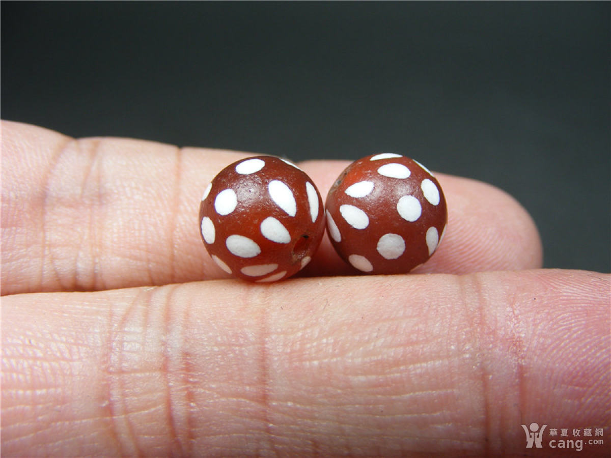 6 老西亚几十年的红色镶蚀带白彩满天星纹中号圆珠2颗(