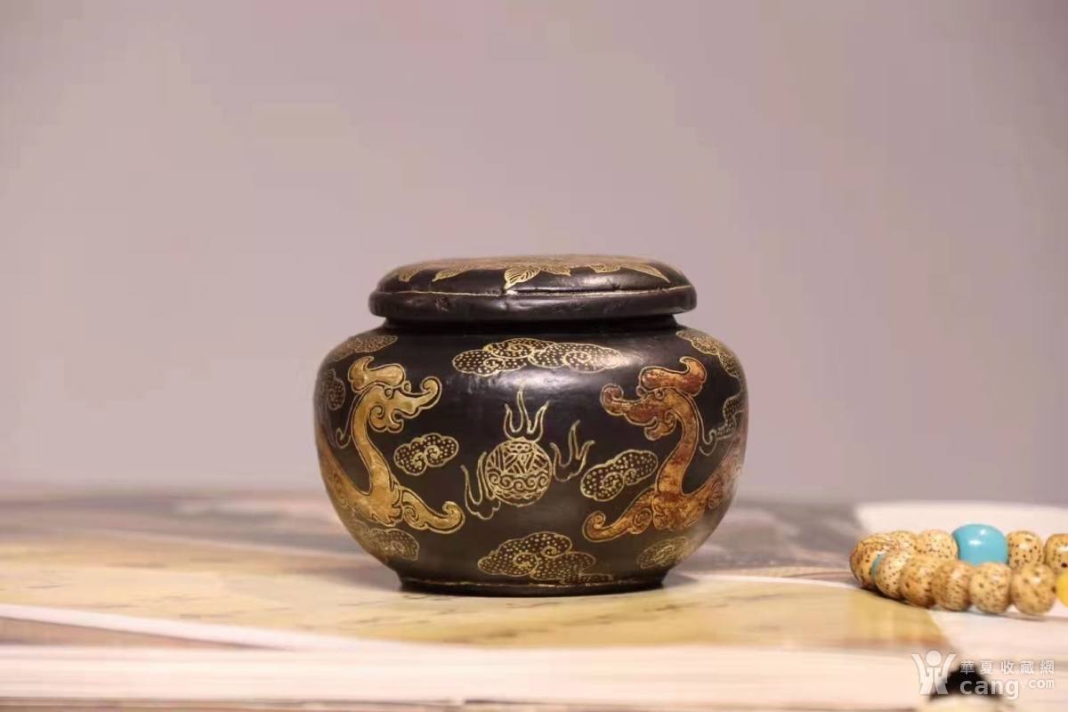 综漆描金螭龙纹•罐;一木整挖,小巧精致,描金螭龙纹,活灵活现