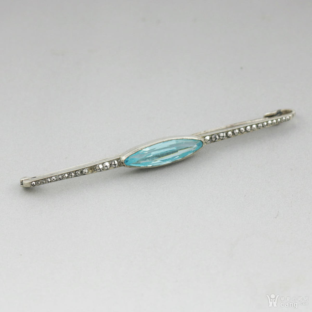 【西洋古董银器/首饰】法国超大颗浅蓝色水晶镶嵌纯银胸针