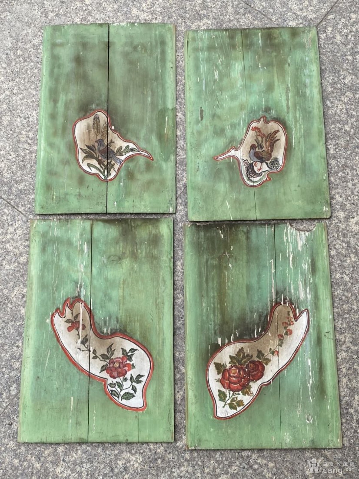 特价,民国精美彩绘木雕,锦鸡月季